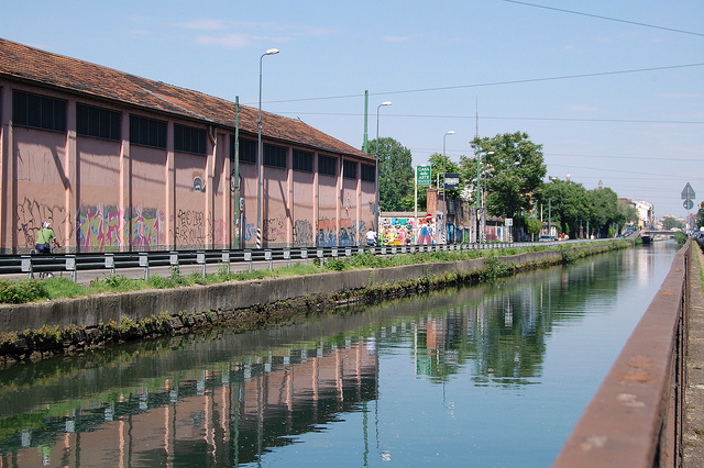 Poi, non me l’aspettavo, la Martesana, con la sua acqua verde scura, liscia come il velluto, ferma. La bellezza antica del Naviglio mi costringe ad accostare l’auto. Scendo. Afa che ti si incolla alla pelle, sibilo di irrequiete zanzare e, incredibile, un frenetico frinire di cicale, sotto al sole del mezzogiorno. Cicale? A dieci minuti dalla Stazione Centrale. Alzo lo sguardo su una recinzione munita di filo spinato attorcigliato, e su severi cartelli di pericolo, “attenzione, unità cinofile”. È un’area delle Ferrovie. Dentro, un groviglio di binari e treni merci, abbandonati, fermi forse per sempre. E nella calura di luglio odore di ferro, e il fischio di una fiamma ossidrica che da qualche parte taglia una lamiera, e clangore di martelli sul metallo. La mia strada segreta è poco frequentata, non passa nessuno. Che la conosca solo il mio navigatore?