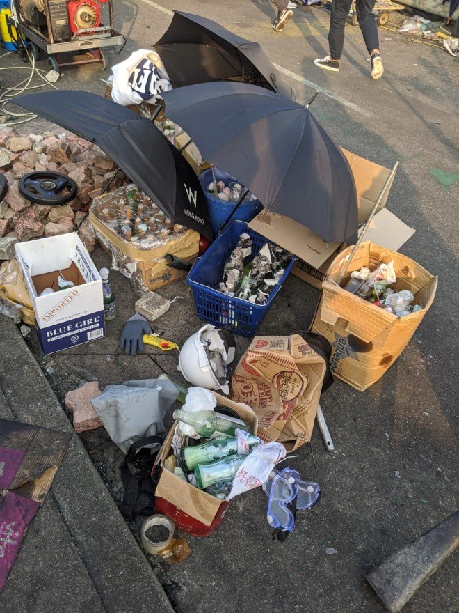 Austin road, la strada in Kowloon dove si trovano le caserme dei militari, è stata cosparsa di chiodi per forare le gomme delle volanti della polizia