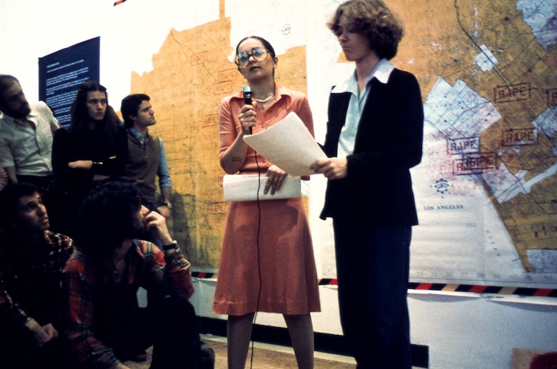 Suzanne Lacy: Non conosco le donne che sono state violentate durante le “Tre settimane di maggio” nel 1977, ma conosco amiche, acquirenti e studenti che hanno subito violenza, e la prima cosa che dico sempre è che non è stata colpa loro. Le donne hanno interiorizzato che in qualche modo loro sono colpevoli delle violenze a loro dirette, ma queste violenze sono anche relative ad altri campi, come quello economico.