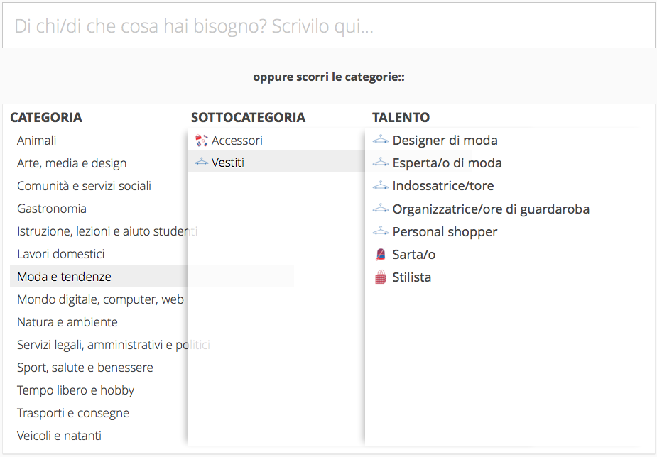 GRATUITO. L’iscrizione al servizio è gratuita e immediata. Si compilano i campi personali, scegliendo tra diverse tipologie di capacità da offrire. Dal pet sitter al personal shopper, dallo sport coach al fotografo, dal cuoco a domicilo alla sarta, qui c’è tutto. Una volta inserito il proprio “talento”, si può andare alla ricerca di chi si ha bisogno sulla bacheca pubblica. Per lanciare la propria offerta si deve poi rendere pubblici i propri dati e rintracciabili dagli altri utenti. «Oltre a far crescere ulteriormente il numero degli iscritti, e anche gli sponsor, il progetto più ambizioso che abbiamo ora è instaurare delle partnership con banche del tempo già esistenti. Sono molte le regioni, province e comuni che ne possiedono già una, sarebbe bello implementare l’offerta di talenti e la condivisione. Intanto abbiamo già iniziato a collaborare con quelle di Verona, di Senigallia, di Modena. E poi con il Comune di Messina».